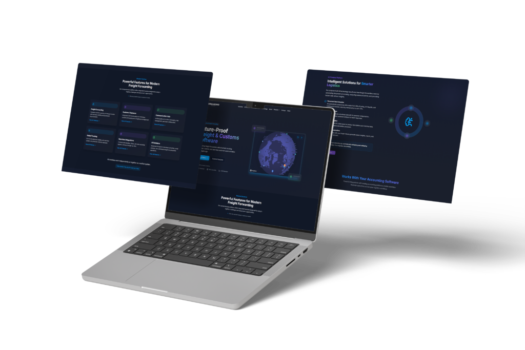A SaaS-style logistics platform website built to present advanced freight and customs solutions with a modern, tech-forward interface.